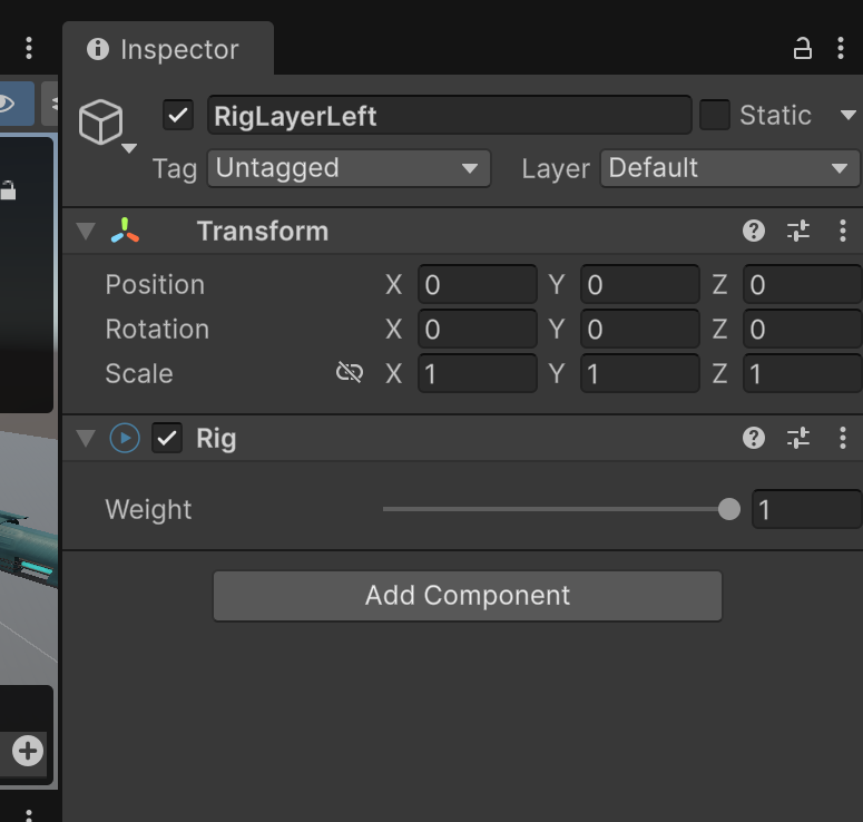 그리고 RigLayerRight와 RigLayerLeft에는 Rig 컴포넌트를 추가해준다.