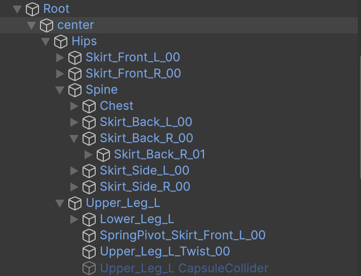 Player>center 레이어를 두기 위해 빈오브젝트를 추가하여 2개를 추가하여 RigLayerRight와 RigLayerLeft로 이름을 변경했다.